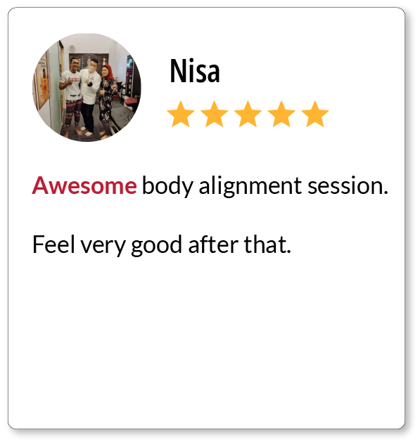 There are currently 3 promotions available, which are the 10% off your first session when you book online, free 1 upper body alignment session, and RM100 discount for full body alignment treatment. We will regularly update our promotions on our website.
